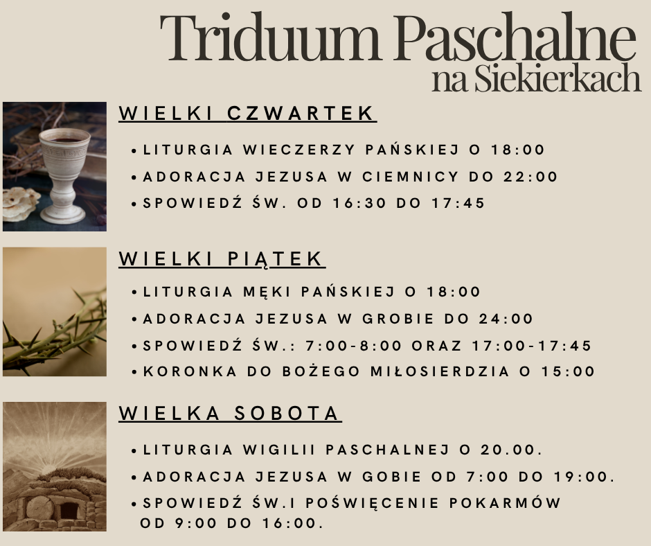 6. W Wielką Sobotę:a. Adoracja w Grobie Pańskim od g. 7.00 do 19.00.