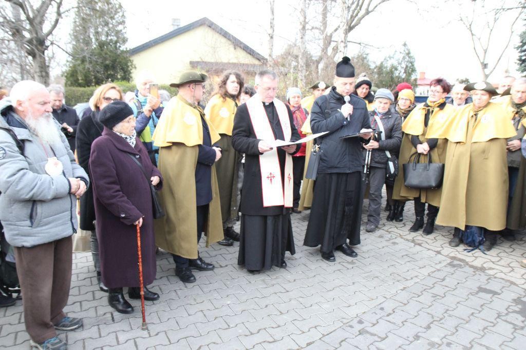 Po Mszy św. konfratrzy i grupa patafian przeszli na miejsce w pobliżu świątyni, gdzie ks. płk Zbigniew Kępa i ks. kustosz Tadeusz Suślik poświęcili pierwszy w Warszawie słupek – znacznik Drogi św. Jakuba, na którym została umieszczona charakterystyczna muszla Jakubowa oraz skromna, ale wymowna tabliczka upamiętniająca niezwykłą pątniczkę, śp. Reginę Madej-Janiszek.