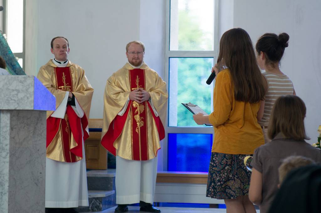 24 czerwca br. o godz.11.00 została odprawiona Msza święta dziękczynna za posługę w tutejszej Parafii i w Sanktuarium o. Jakuba Wojciechowskiego i o. Jacka Wolana. O. Jakub, po trzech latach posługi w Warszawie, otrzymał od Wyższego Przełożonego Prowincji obediencję (list posłuszeństwa) do naszego Kolegium w Łowiczu, a o. Jacek po dwóch latach do Kolegium pijarskiego w Krakowie, na osiedlu Wieczysta. Po Eucharystii przedstawiciele Parafii i Szkół Pijarskich dziękowali odchodzącym katechetom. Parafianki-wolontariuszki zaprosiły wszystkich chętnych na słodką agapę.