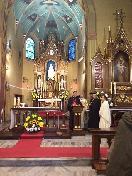 Po dotarciu na miejsce celebrowaliśmy Mszę św. o Bożym Miłosierdziu w klasztornej kaplicy z łaskami słynącym obrazem Jezusa Miłosiernego i grobem św. Siostry Faustyny. Na zakończenie Eucharystii dostąpiliśmy łaski. Do kaplicy wraz z Ks. Bp. Janem Zającem, sufraganem krakowskim, przybył Kardynał Béchara Boutros Raï OMM, libański duchowny katolicki, 77. maronicki patriarcha Antiochii. Skierował do nas okolicznościowe słowo i udzielił pasterskiego błogosławieństwa. Po tym nastąpił akt przekazania relikwii.